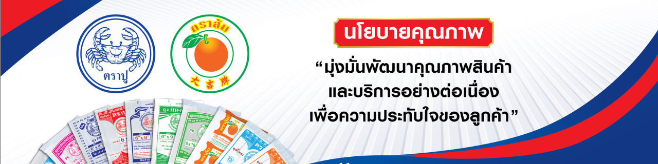 เราเป็นหนึ่งในผู้ผลิตถุงพลาสติกรายใหญ่ในเมืองไทย ที่เน้นเรื่องคุณภาพ และการบริการลูกค้าอย่างจริงใจและเป็นกันเอง ซึ่งปัจจุบันบริษัทฯ ผลิตถุง พลาสติกทุกชนิด อาทิ ถุง PP บาง PP หนา ถุง PPT พับข้างใส และพับข้าง พิมพ์ลาย ถุง IPPA ใสและพิมพ์ลาย ถุงเย็น PE ถุง HD ถุงหิ้ว HD/PP/PE ถุงพิมพ์ ถุงลามิเนต งานสั่งทำต่างๆ ภายใต้สัญลักษณ์ “ตราปู & ตราส้ม”