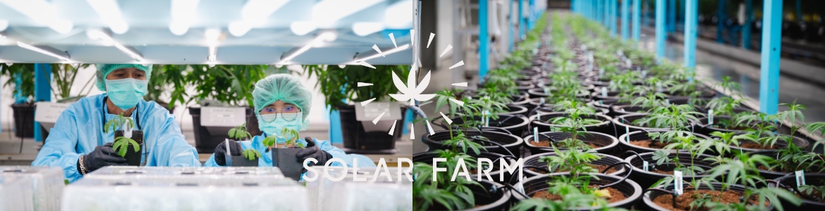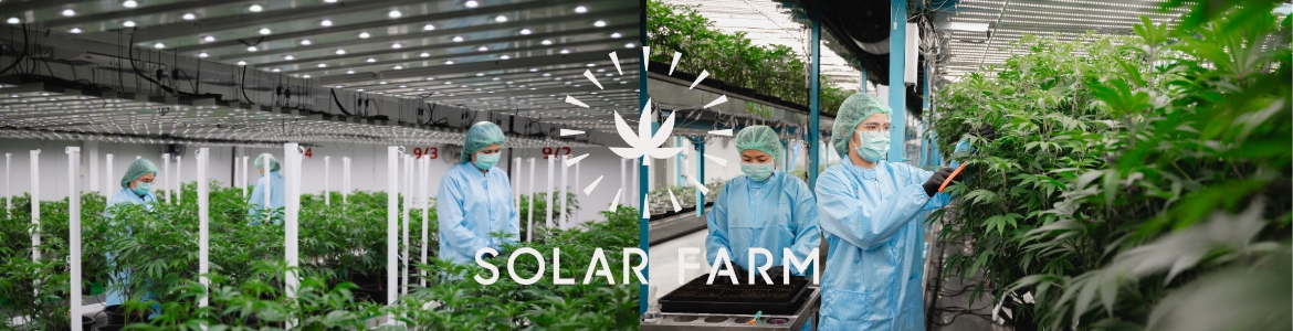 Solar Farm คือฟาร์มกัญชาอินดอร์ถูกกฎหมาย มีมาตรฐานการแพทย์ที่ใช้พลังงานแสงอาทิตย์และระบบปลูกแบบยั่งยืน ผสานเทคโนโลยีไฟ LED ทันสมัยและระบบควบคุมสภาพแวดล้อมแบบโรงงานยา