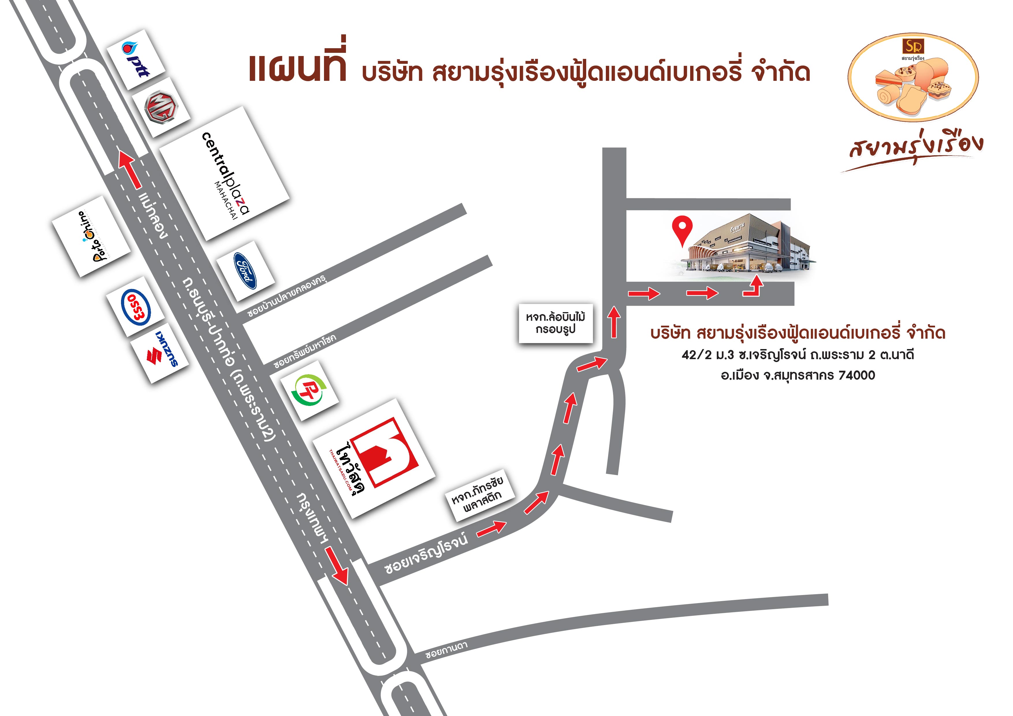 การเดินทางเพิ่มเติม : ทางเข้าบริษัทฯ อยู่ใกล้กับไทวัสดุ สาขามหาชัย ติดถนนพระราม 2 ให้สังเกตจากประตูทางออกของไทวัสดุ เลยมาประมาณ 4-5 เมตร แล้วเลี้ยวซ้ายเข้าซอยเจริญโรจน์ เข้าซอยมาประมาณ 1 กม. แล้วเลี้ยวขวาประมาณ 200 เมตร จะถึงบริษัทฯ