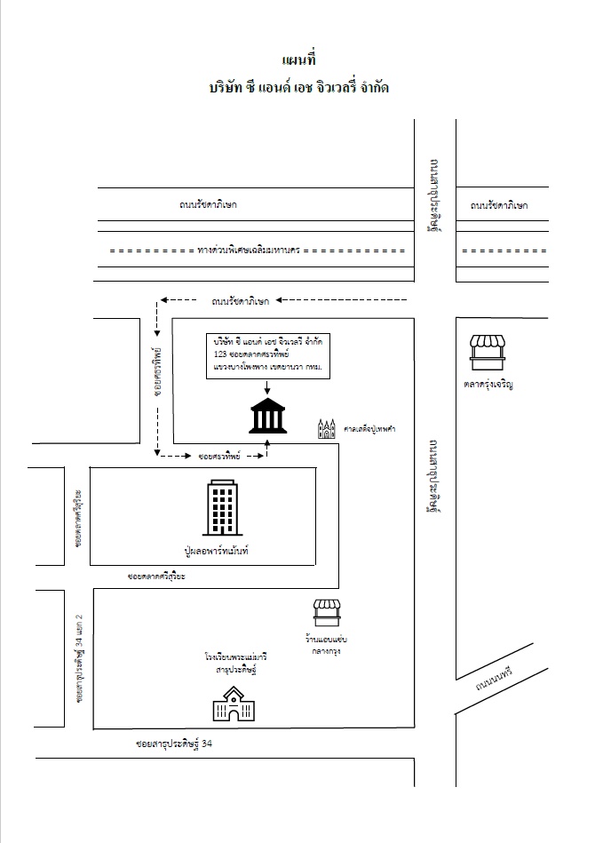บริษัท ซี แอนด์ เอช จิวเวลรี่ จำกัด 123 ซอยตลาดศธรทิพย์ แขวงบางโพงพาง เขตยานนาวา จังหวัดกรุงเทพมหานคร 10120 ประเทศไทย