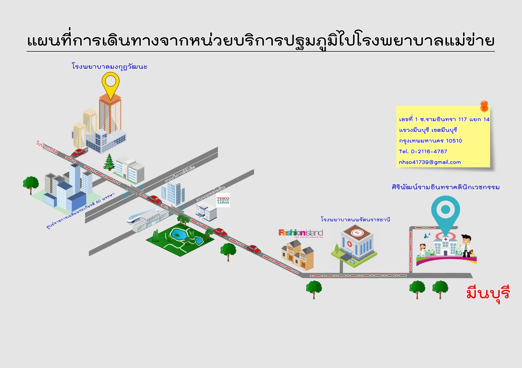 การเดินทางเพิ่มเติม : ซอยรามอินทรา 117 แยก14 มีรถไฟฟ้าสายสีชมพู ลงสถานีบางชัน