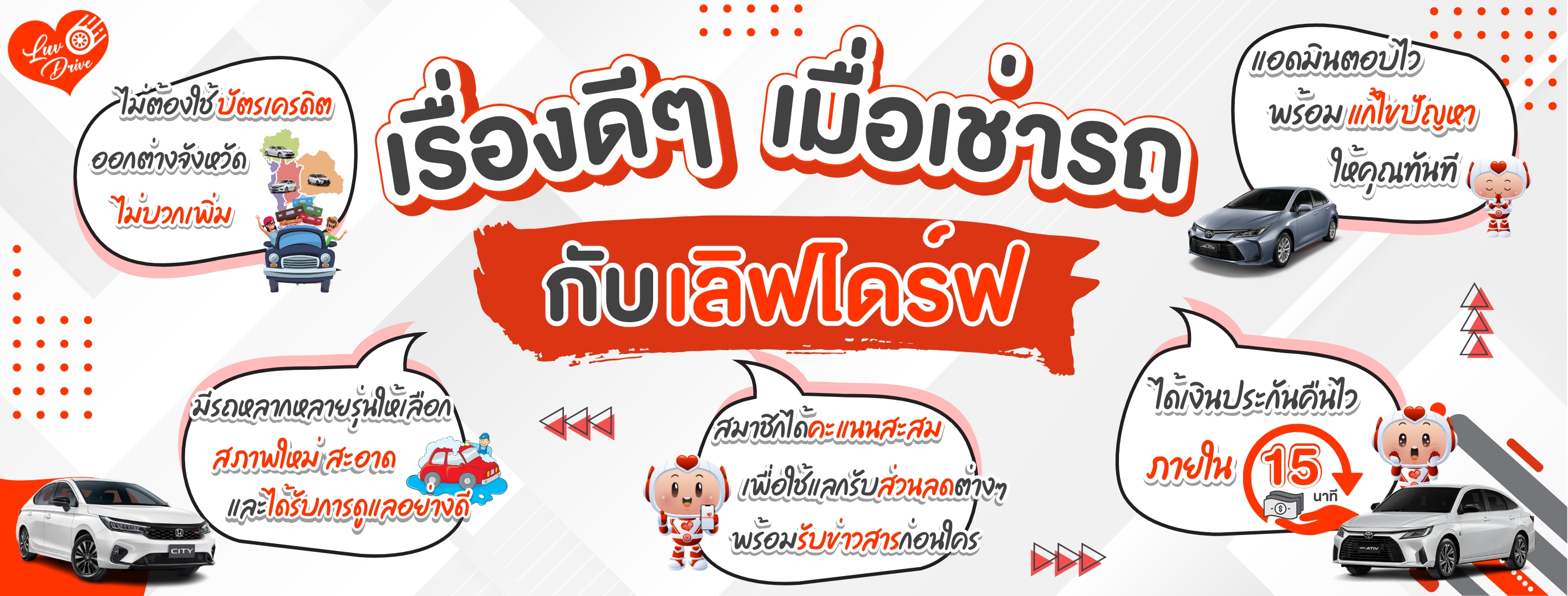 บริษัท เลิฟไดร์ฟคาร์เร้นท์ จำกัด มุ่งมั่นที่จะก้าวสู่การเป็นผู้นำอันดับหนึ่งทางด้านบริการให้เช่ารถยนต์ทุกประเภท และทั่วประเทศไทย ด้วยเทคโนโลยีลํ้าสมัย ด้วยทีมบริหาร และทีมงานคุณภาพ รวมถึงวัฒนธรรมองค์กรที่พร้อมปรับเปลี่ยน และเปิดรับการนำเสนอความคิดนอกกรอบ หากคุณคือคนที่พร้อมเป็นส่วนหนึ่งของเรา