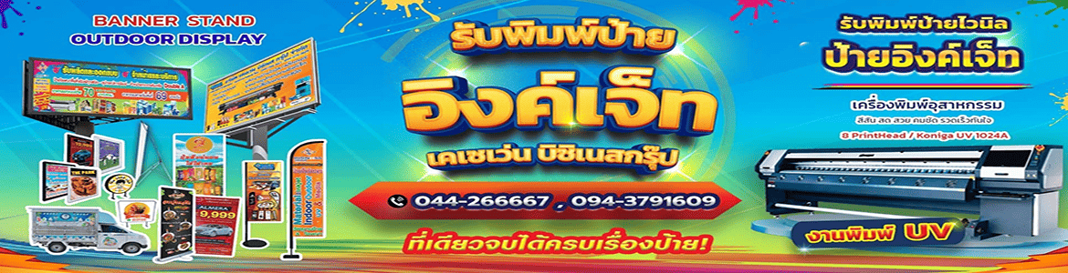 ดำเนินธุรกิจด้านงานพิมพ์ครบวงจร ทั้งจำหน่ายอุปกรณ์สื่อสิ่งพิมพ์ ผลิตป้ายไวนิล ป้ายอิงค์เจ็ท และจำหน่ายกระดาษทุกชนิด