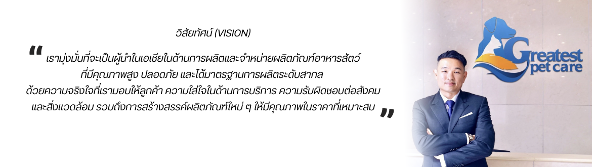 บริษัท เกรทเทสท์ เพ็ทแคร์ จำกัด เป็นบริษัทที่ดำเนินธุรกิจด้านการการผลิตและจำหน่ายอาหารสัตว์เลี้ยง (สุนัขและแมว) โดยให้ความพิถีพิถันในกระบวนการผลิตทุกขั้นตอน ใช้เครื่องจักรและเทคโนโลยีที่ทันสมัย รวมถึงฝ่ายวิจัยและพัฒนาผลิตภัณฑ์ของบริษัท เน้นการพัฒนาผลิตภัณฑ์เพื่อให้ได้อาหารสัตว์ที่มีคุณภาพ ปลอดภัย ได้มาตรฐานสากล ตรงตามหลักโภชนาการ