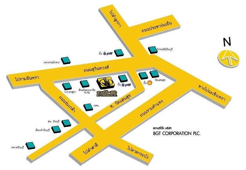 บริษัทบีจีที คอร์ปอเรชั่น จำกัด (มหาชน) 188 ถนนสุวินทวงศ์ แขวงมีนบุรี เขตมีนบุรี จังหวัดกรุงเทพมหานคร 10510 ประเทศไทย