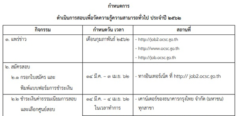 http://job2.ocsc.go.th/ หัวข้อ "การสอบเพื่อวัดความรู้ความสามารถทั่วไป ประจำปี 2562" ไม่เว้นวันหยุดราชการ