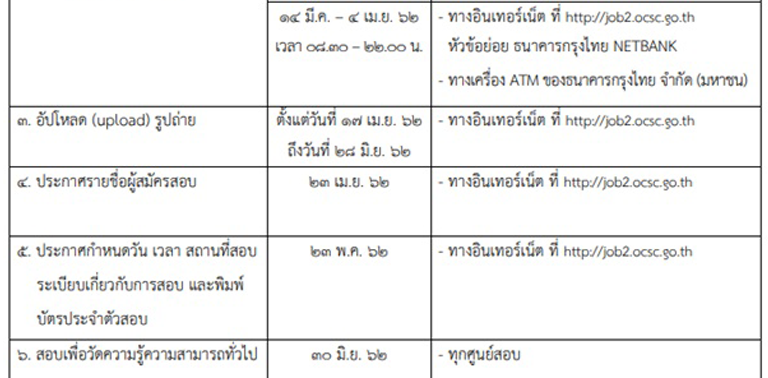 3. กำหนดการ รับสมัครสอบเพื่อวัดความรู้ความสามารถทั่วไป ประจำปี 2562 เพิ่มเติม (กรณีผู้สมัครสอบที่ได้ลงทะเบียนสมัครสอบ แต่ไม่สามารถชำระค่าธรรมเนียมในการสมัครสอบได้)