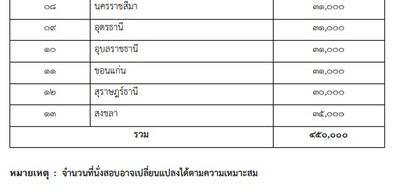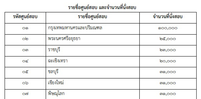 รายชื่อศูนย์สอบ และจำนวนที่นั่งสอบ